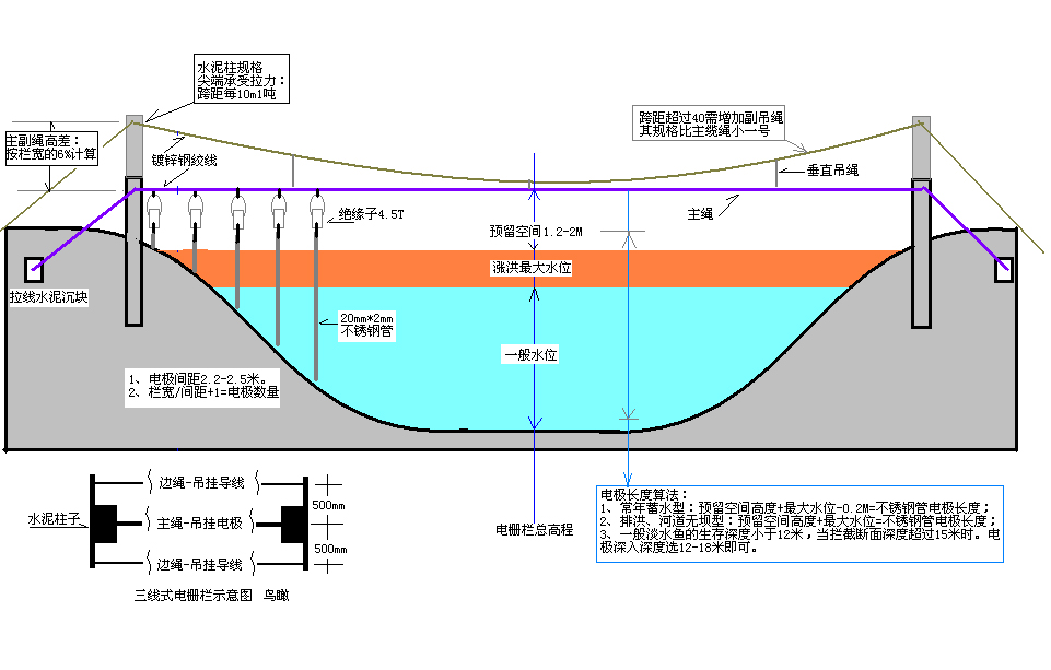 用途: 庫(kù),塘,河流泄洪防魚(yú)逃。 優(yōu)點(diǎn):與網(wǎng)攔相比 1、不影響正常泄洪 2、適合任何地形 3、攔魚(yú)效率高 4、不存在掛、老化問(wèn)題經(jīng)久耐用 5、不需要人員管理,一次安裝永不維護(hù) 技術(shù)指標(biāo): 1、脈沖頻率:5---20Hz可調(diào) 2、負(fù)載能力:最小0.5歐姆 3、輸出電壓:2200Vp—p 4、消耗功率:2kw 5、電源電壓;220V/AC50Hz 6、使用環(huán)境溫度-10---50℃ 7、環(huán)境濕度:小于80% 8、整機(jī)電流:3—10A 9、單機(jī)攔魚(yú)最大水面幅寬85米 10、攔魚(yú)最大水深30米 11、工作形式:連續(xù) 12、整機(jī)質(zhì)量:64 KG
